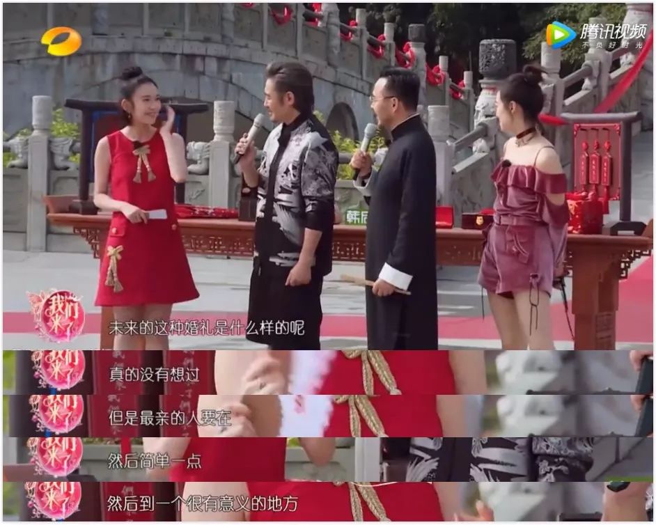 之前唐艺昕参加节目上说,幻想中的婚礼,就是在一个有意义的地方,和最亲的人在一起就好。