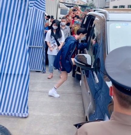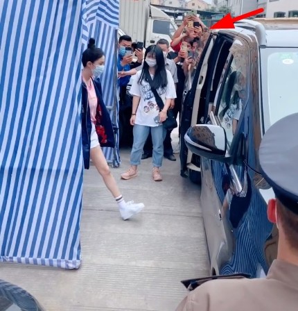 现场还疑似有保安维持秩序,看来杨幂方面也是被围观跟拍者困扰烦了,不得不用帐篷隔开,不变的是身边依然有两个助理跟随。