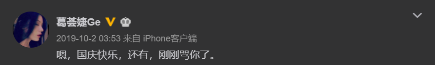 葛荟婕去年10月发微博:说刚刚骂了你!这句话也真是很明显说给她前夫听的呀,在那之前,前妻不知内涵汪峰多少次了