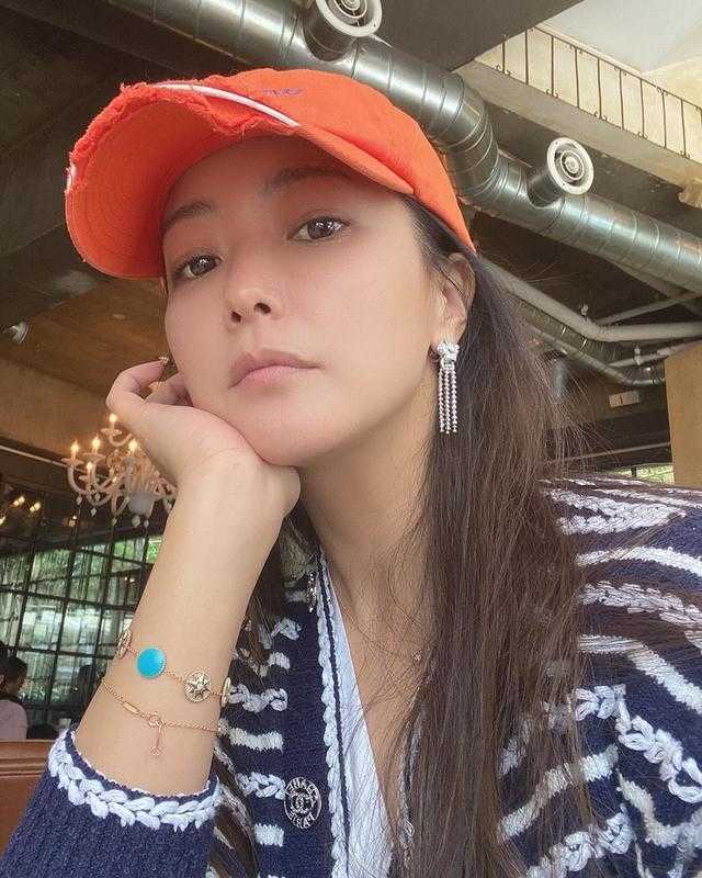 金喜善 穿针织开衫晒自拍照,素颜皮肤太