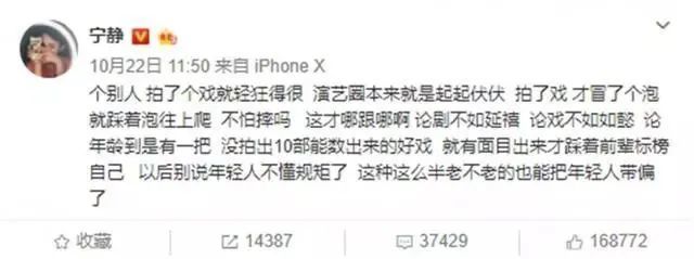 宁静的火辣大家都知道。拍戏遇见看不惯的就发微博直接怼。