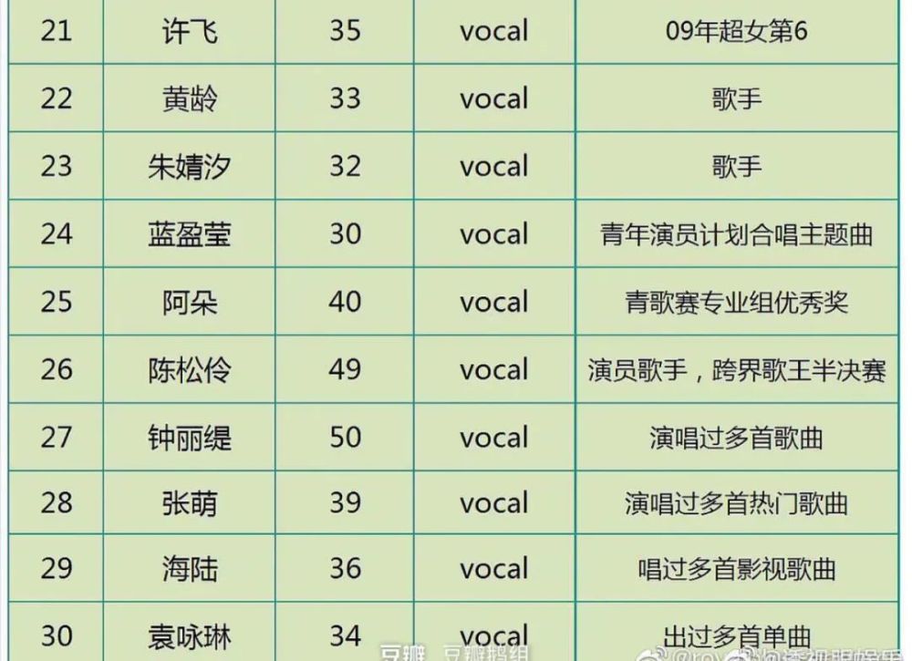 从网传名单来看,这30位女艺人中有偶像,也有演员、歌手、主持人。