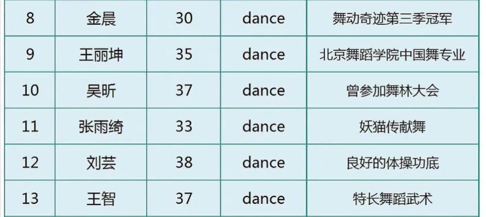 唱跳担当要求的会更多一些,从名单中我们能看到基本上都是有一定舞台经验的人。
