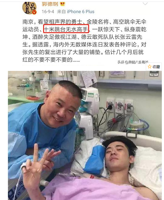 张云雷这一跳刷足了存在感,很多媒体称其是“十米跳台无水选手”“德云社敢死队队长”等等,作为师父的郭德纲也发文调侃,并且预言经过这么一跳,几个月后就红得不要不要的。