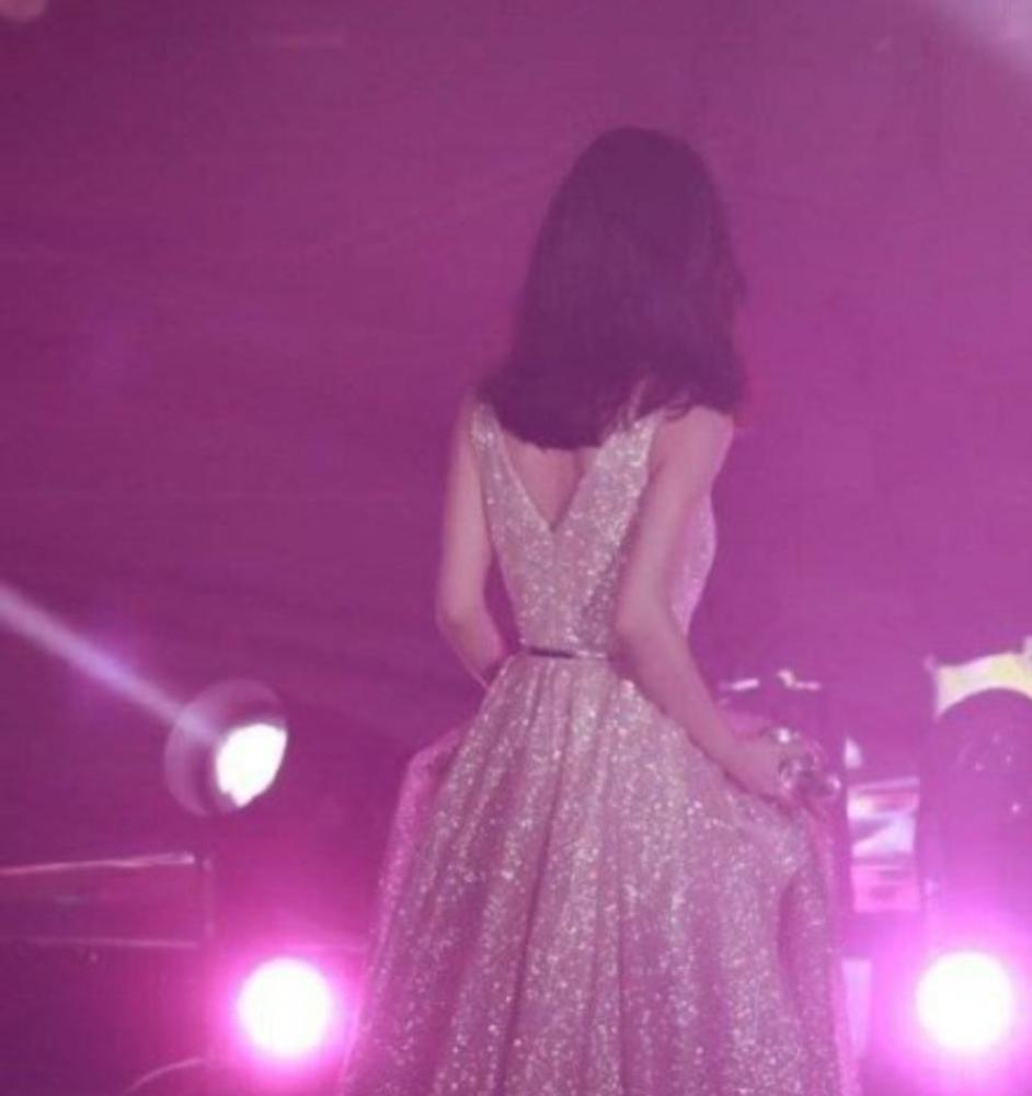 配上一袭金色V领亮片渐变长裙,温婉又闪耀,配上会发光的锁骨,衬得整个人闪闪发光,光彩夺目,气质尽显。