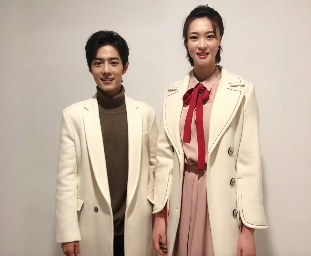 但是,在下图的合影中肖战和惠若琪上演了最萌身高差,惠若琪穿着白色风衣,亭亭玉立,而肖战穿着白色风衣,帅气十足,不过,惠若琪比肖战高,看起来跟姐姐和弟弟似的。