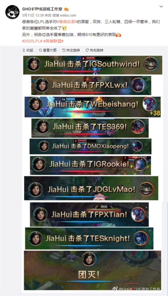 港诡实录工作室感谢LPL选手