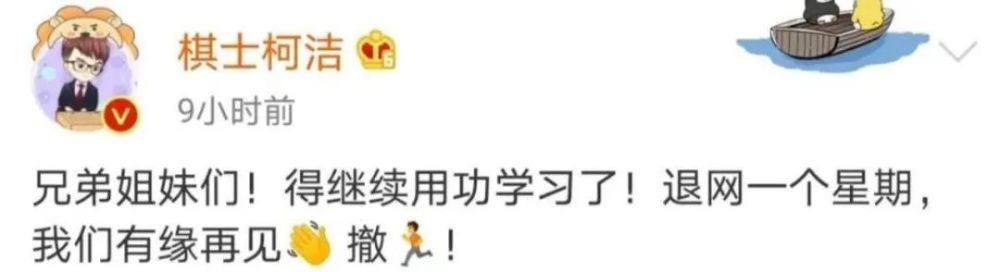 最终,战火烧了两天多之后,26日凌晨,柯洁宣布“退网一个星期”,以最简单粗暴的方式结束了“战役”。