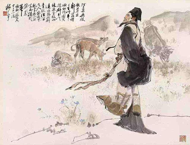 他会在酒兴上来时醉里贪欢,借着酒意撒泼打滚,指着路边的松树让它不要来扶自己;他会散发披衣襟,一个人痴痴的坐在小池边傻笑;他也会享受清闲,感受着最平常的农家生活。