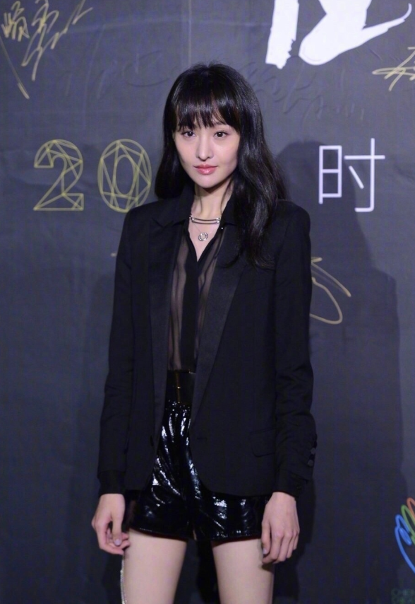西装造型是如今女星最爱的服装款式,西装的直角肩垫肩设计让服装很有立体感, 内搭上选择黑色网纱设计加持女性魅力。黑色皮裤加持将长腿优势展现出来,和模特照相比,爽妹子的状态也没有差到哪里去。