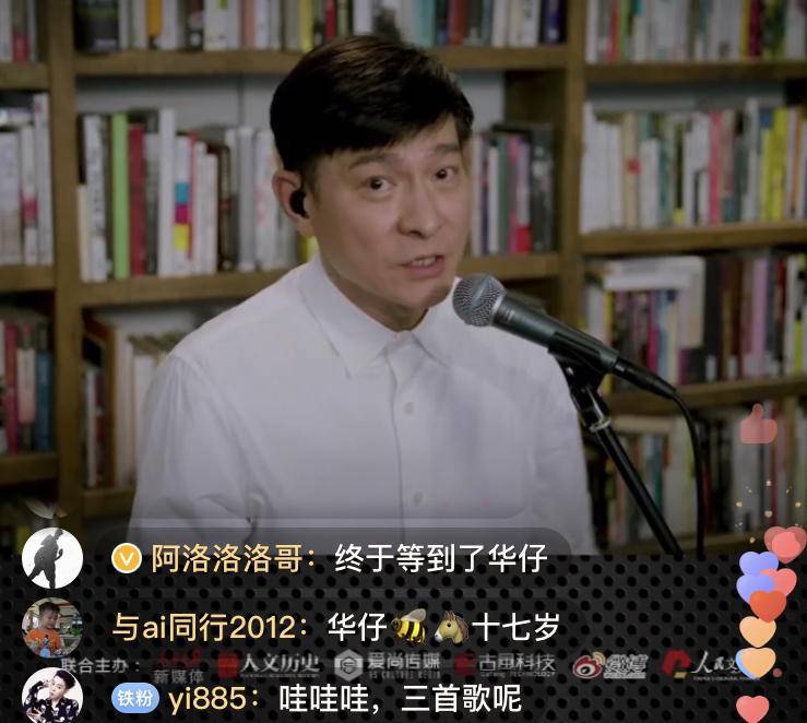 在将近12点时候,刘德华终于千呼万唤始出来,连唱三首歌曲。身穿白衣,在书房先是唱起《月亮代表我的心》,之后也献上自己的经典歌曲《爱你一万年》。