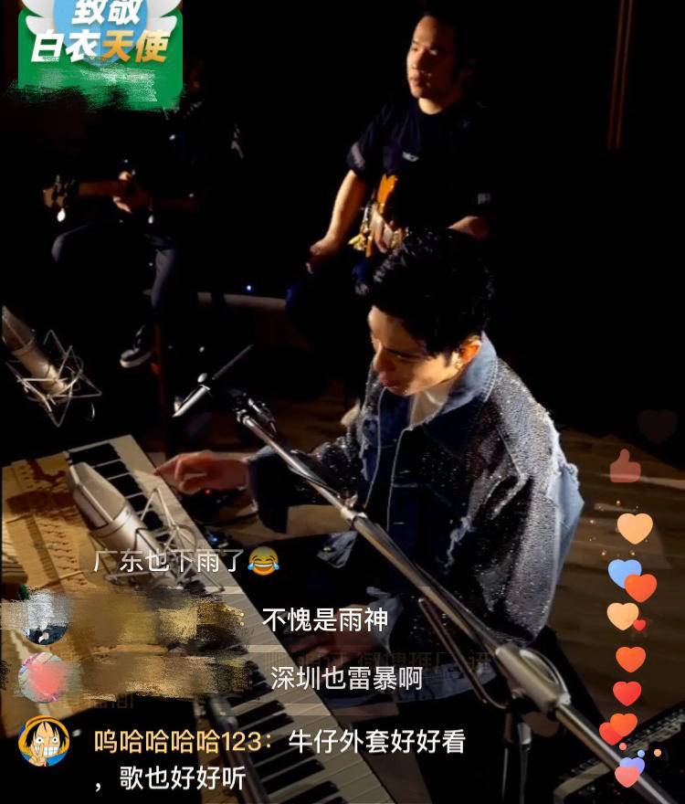 在音乐录制棚,萧敬腾和乐队弹唱《披星戴月的想你》,之所以选择这首歌曲,萧敬腾表示是在疫情期间在网上看到有医生的防护服上写着自己的名字,所以他想用自己的歌声,对这两位医生的付出表示感谢。虽然因为防护服,我们不能看到每位医护人员的面容,但是对于他们的付出我们还是十分感谢。