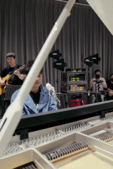 萧敬腾和乐队弹唱《披星戴月的想你》,他表示疫情期间在网上看到有医生的防护服上写着自己的名字,所以他想用自己的歌声,对这两位医生的付出表示感谢,很暖!老萧这件镶满水钻的牛仔衣也和歌曲很相配哦。