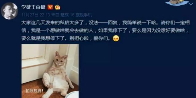 用他微博的话来说,就是:如果我停下了,那其实就是我不想弄了,所以你们也别为我惋惜,小爷乐意。