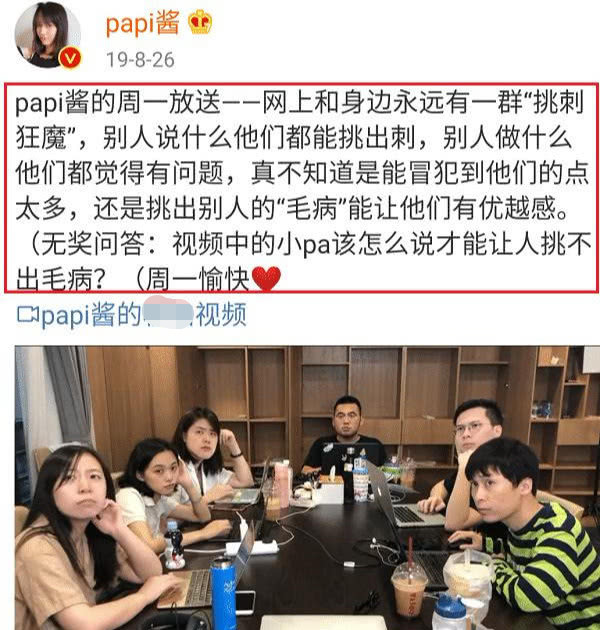 面对网上的狂喷,papi酱也不甘示弱的在自己的社交号上晒出“挑刺”的视频。视频的核心内容就是表达那些喜欢挑刺的人的给人是有多么的反感。而网友们对此更是感同身受,毕竟你不是人民币活不成每个人都喜欢的样子。不过这反击归反击,部分网友们的吐槽也让首次做母亲的papi酱心情十分低落。