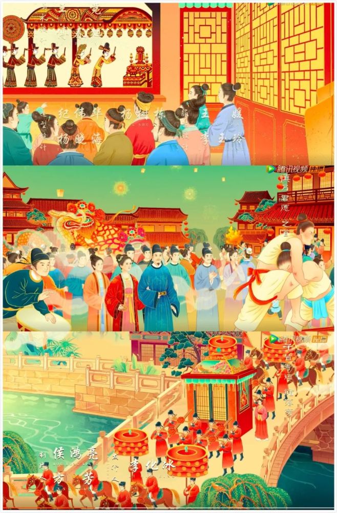 2020年的《清平乐》用人物群像式的漫画致敬《清明上河图》,片名出现后的背景更是一副青绿山水画。既体现了宋代的俗文化,也表现了宋代的雅文化。