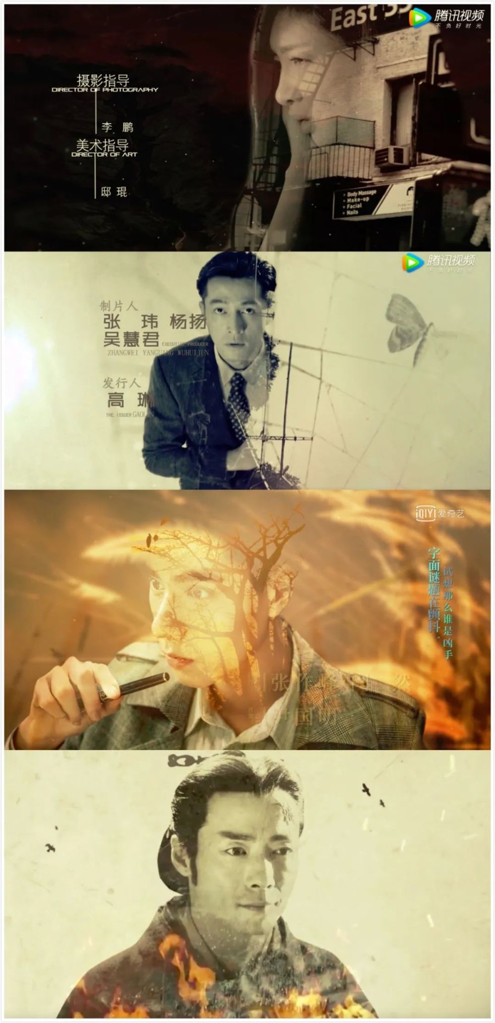 如果说传统电视剧片头都是从拍摄素材库进行剪辑,那么现在的国剧更倾向于对最能呈现影像质感的场景、人物、符号进行提炼。