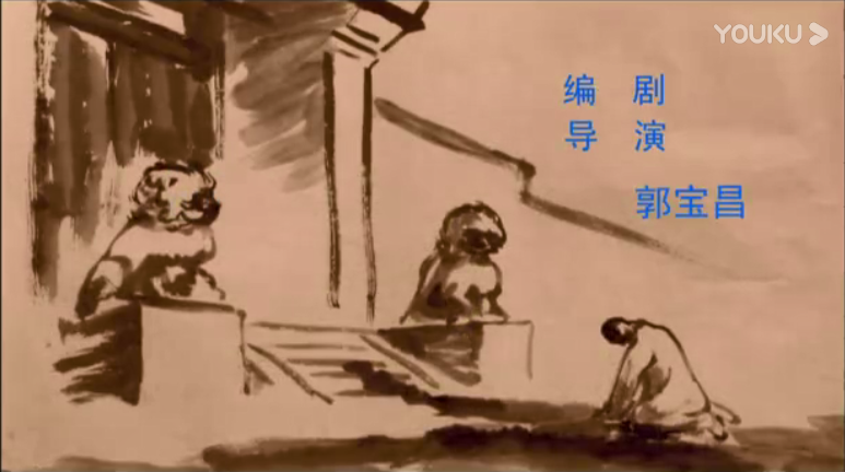 《大宅门》的片头,用京剧伴奏搭配国画,真可谓是最炫民族风。在《大宅门》片头的国画中,有一座宅院的门楼,院门之前跪着一人,上书“导演郭宝昌”。
