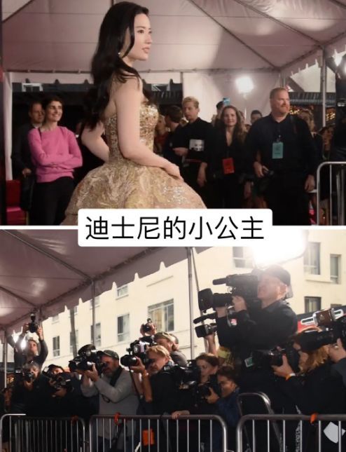 在好莱坞的首映礼上,她一身金色长裙走在街上,周围全是支持她的粉丝,老老少少男男女女纷纷围着拍照,俨然成了一个小公主。