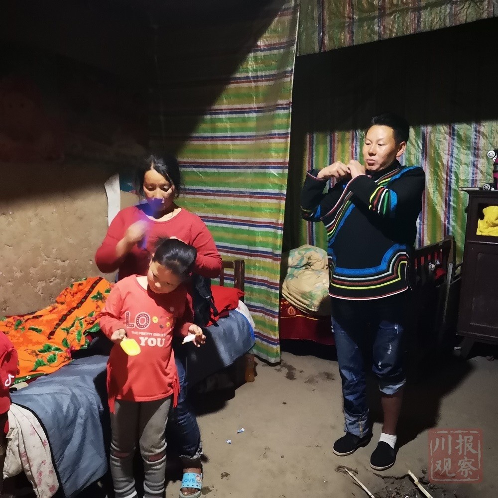 俄的根哈昨天提前进县城搬九件套到了新房,今天凌晨三点才回到悬崖村,脚已经走肿了的俄的根哈睡了两小时又起床,一家人准备下山了。