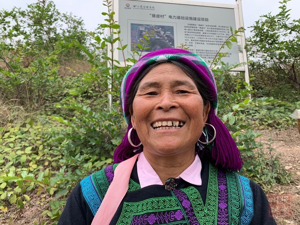 70岁的阿子日哈,是“悬崖村”勒尔组搬迁群众中年龄最大的一位。她手里拿着的图片,是3年前一位进村记者给她拍摄的。老人说要把这张照片挂在新家里,随时想想曾经“悬崖村”上的日子,才会更珍惜眼下的生活。