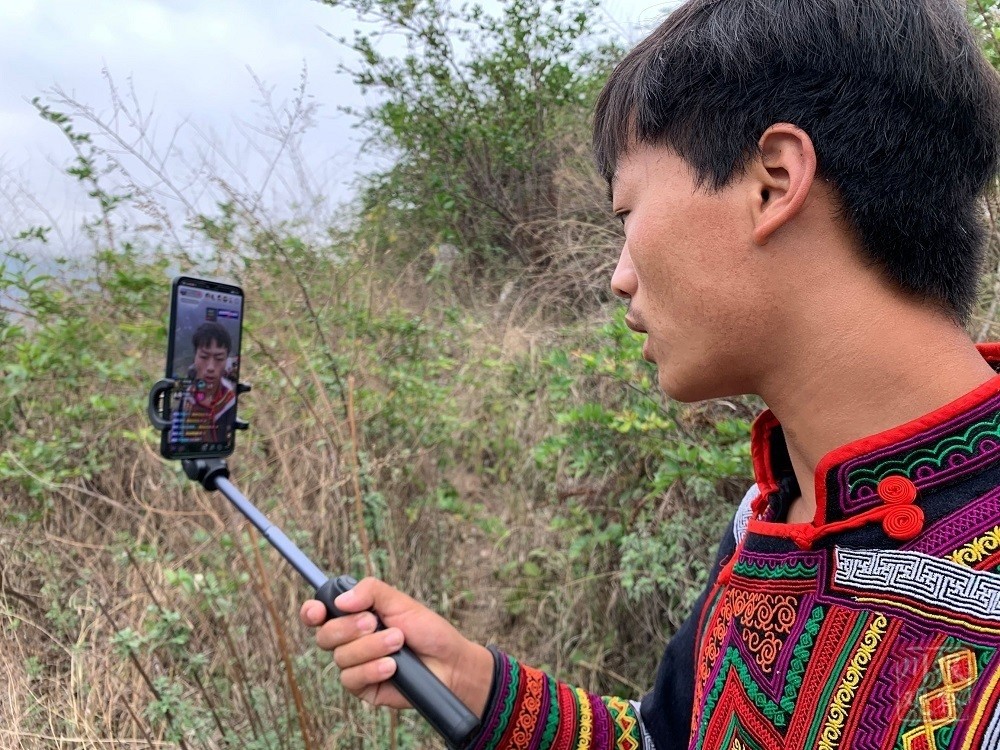 村里的直播网红某色拉机正在做悬崖村搬家直播。