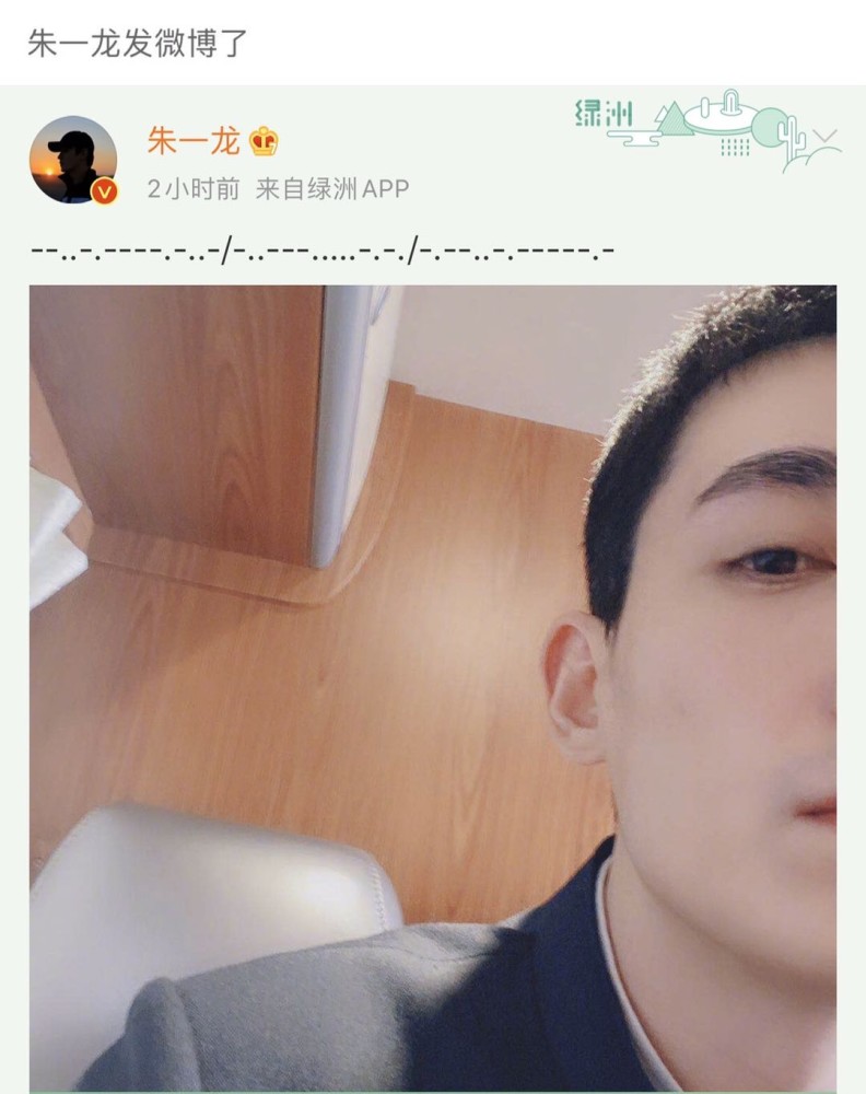 今早8点,朱一龙突然绿洲营业,发了一张短发自拍!配文也用了摩斯密码。是的,你以为只会一脸懵的朱一龙同学,选择正面“刚”!配文翻译过来很简单,只有三个字:早上好。之后朱小室也紧跟老板的步伐,在评论中留下了自己的第一条“密码”留言。经过粉丝翻译后,发现是五个字:抓住林楠笙。