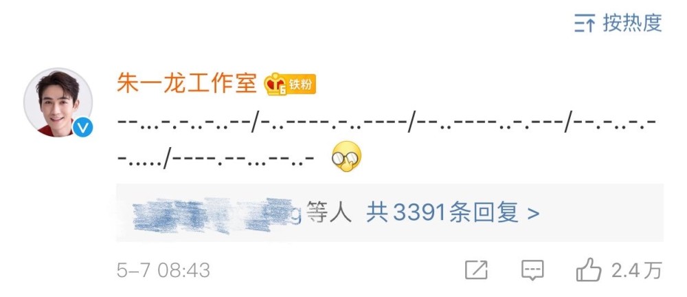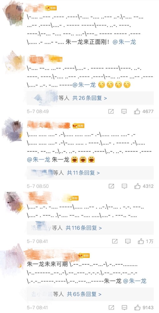当时,粉丝们还纷纷讨论说,下次朱一龙发微博的时候,大家一起去微博下面评论摩斯密码,朱一龙会不会一头雾水呢?