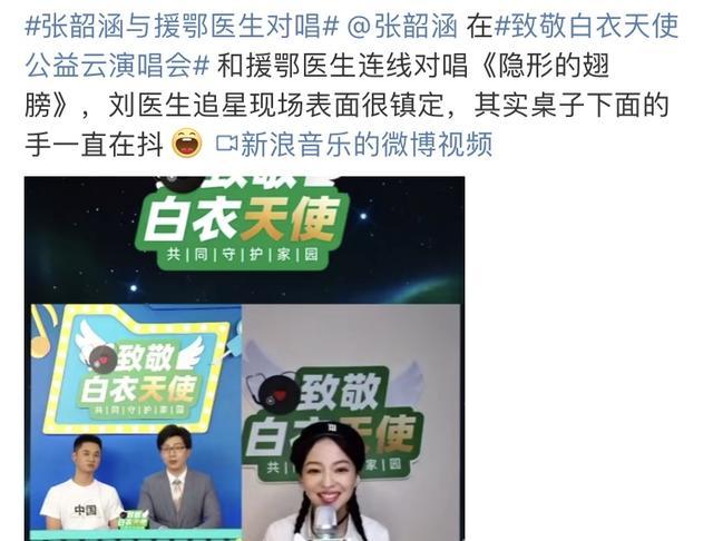 这不,有一位援助湖北的湖南籍医护便是她的粉丝。在这次的活动中,活动方也是帮他进行了连线。身处台湾的张韶涵还是像少女的打扮一样,非常靓丽,而她也是在和医护的一番交谈过后,便正式开始了对唱。