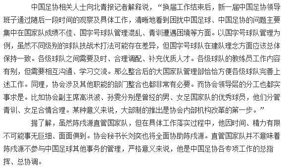 足协内部分工调整 陈戌源翻转足协内部人事,至少1