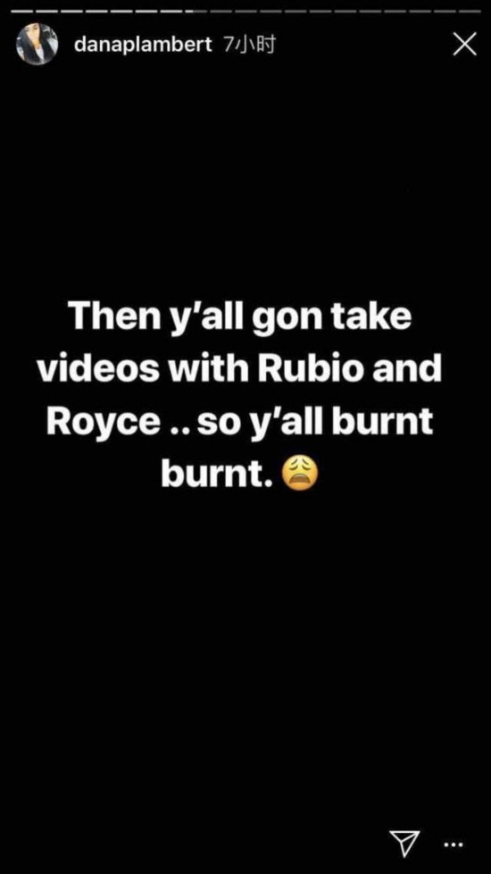 没想到,阳光正面的卢比奥人设毁在了达娜和克劳德的出轨门反转大戏上。达娜看起来像是掌握了克劳德众多出轨的材料,她在社媒继续爆料:我会列出从上赛季起和你一起搞每个人名单,包括上赛季你在骑士时,也包括过去几年的恶心丑事。