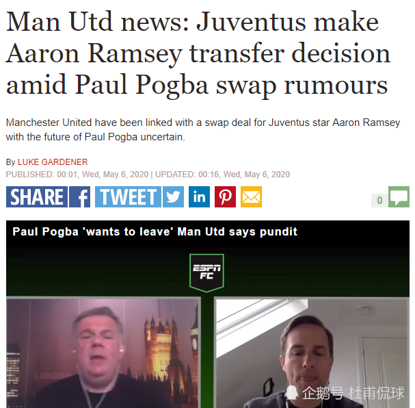 北京时间5月6日,英媒《每日快报》透露,意甲的尤文图斯和英超的曼联正在酝酿球员互换,两队的中场球员博格巴和拉姆塞可以互换门庭,如果尤文完成对于法国中场的回购,那么这对C罗也是巨大利好,葡萄牙球星冲击欧冠冠军将再添砝码!