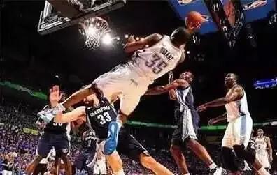 除了诺维茨基,杜兰特更是场上一个无解的bug,超过2米1的身高,却尽做一些后卫的动作。他的投篮出手高度比乔丹还要高,本身已经无法防守,他还要后仰,防守球员能做的唯一事情就是双手合十祈祷他不要投进了吧!早年间一场比赛中,小加索尔已经几乎把杜兰特挤出场外,杜兰特还是能后躺投篮命中3+1。