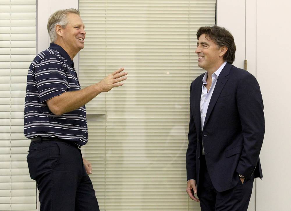 直播吧5月7日讯 据美媒CBS报道,凯尔特人队老板维克-格罗斯贝克(图右)近期捐款100万美元以援助新冠病毒疫苗的开发工作。