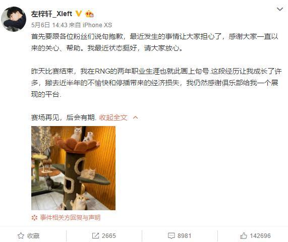 当然,最重磅的还是小叮当XDD正式宣布离开RNG!关注选手新闻的网友都知道,在之前XDD和RNG发生了矛盾,因为直播合同的原因,XDD被RNG起诉并索赔五千万!这个消息刚曝出来的时候,瞬间在网上引起了热议,但双方都没有做出任何回应,而且XDD在后续依然登上赛场打比赛。