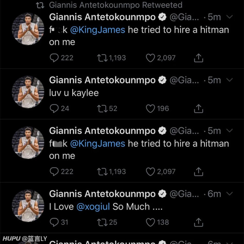 字母哥社媒账号被盗 接连辱骂库里詹姆斯科比等人,登