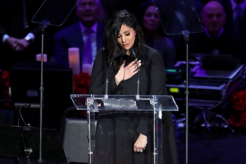 2月25日,科比遗孀瓦妮萨在追思会上发言。 新华社发