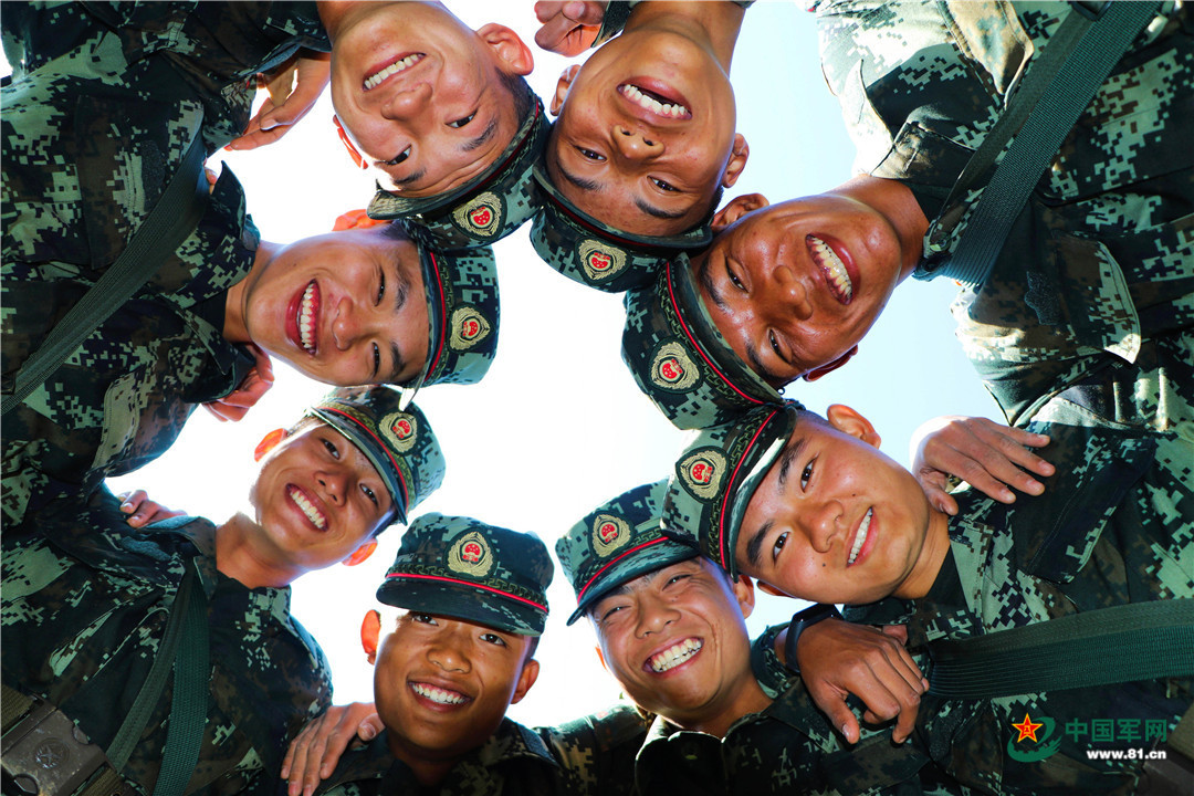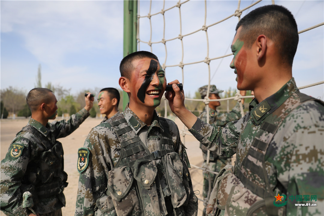 刚下训练场,萌新战友回眸一笑。果志远 摄 新兵下连后第一次涂抹伪装油,露出新奇的笑脸。曹旭光 摄 新兵入伍,他们五湖四海皆兄弟。果志远摄