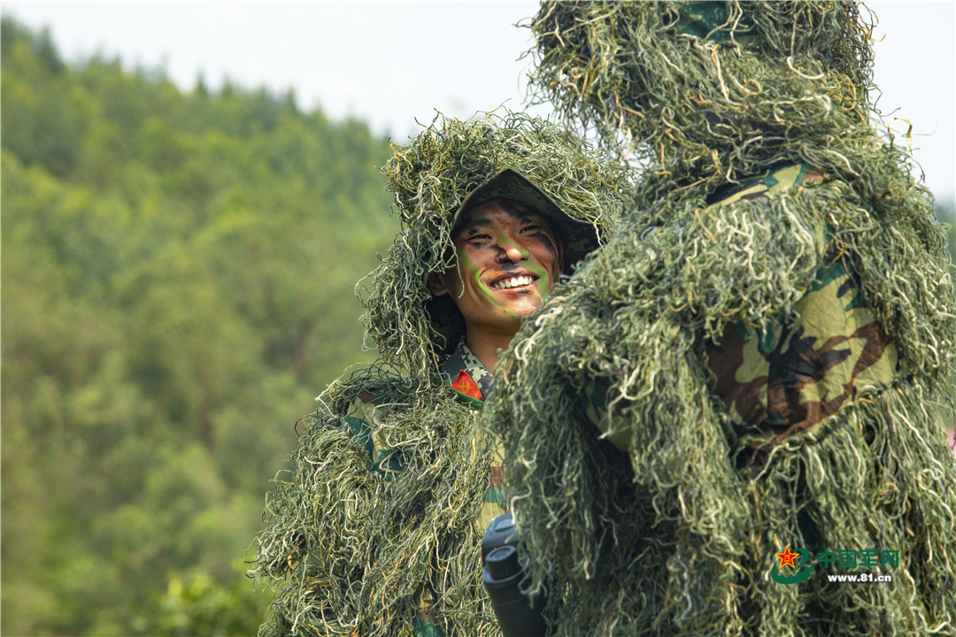训练间隙,狙击手杨明星和同伴交流心得。果志远 摄 第76集团军某旅侦察兵训练间隙露出开心笑脸。曹旭光 摄 训练间隙,兵哥开心地玩起了游戏。果志远 摄