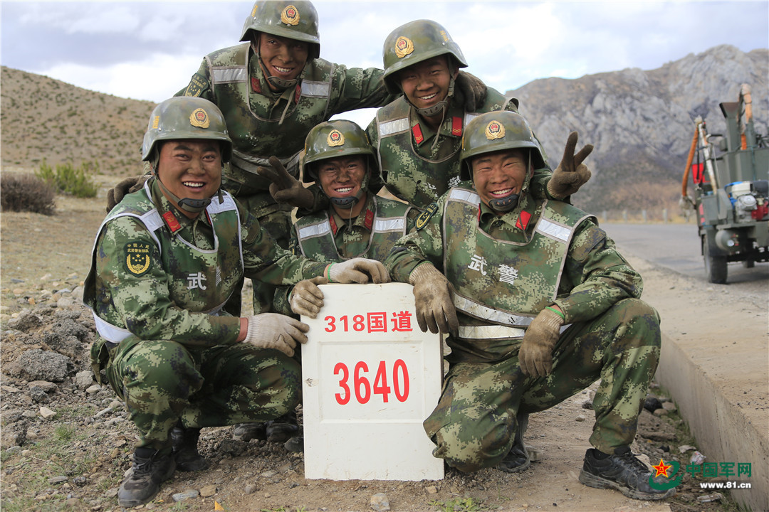 训练结束后,看着战友满是淤泥的脸庞,官兵们开怀大笑。余海洋 摄 官兵完成一天的任务后,与川藏线里程碑合影留念。陆文凯 摄 完成训练任务,他们微笑点赞。果志远 摄
