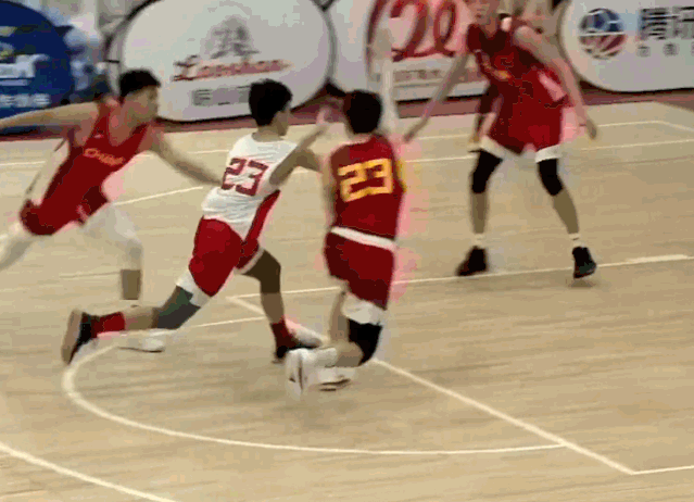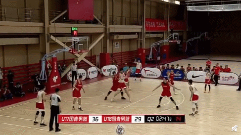 U18的学长上来主打外线,连续突破命中,压着弟弟们一顿输出。