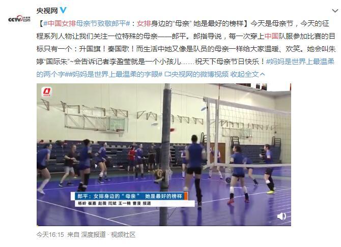 北京时间5月10日,这一天是母亲节,中国女排官方制作了一个致敬郎平指导的视频,这个视频中播放的背景音乐是beyond经典歌曲《喜欢你》,这个视频中朱婷有一句话让人泪目:郎导对于你们来说可能只是一个教练,但是对于我们来说是一个母亲。”这个视频上线后很快得到了几十万的播放,有无数的女排球迷都在评论区为郎平指导送上祝福,而央视CCTV5也在中午的体坛快讯中致敬了郎导。