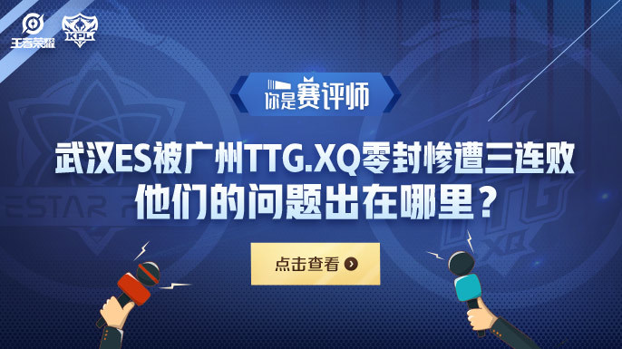 在5月9日武汉eStar对阵广州TTG.XQ的比赛中,广州TTG.XQ以总比分3:0零封武汉eStarPro取得两连胜。而武汉eStar则已经苦吞三连败。武汉eStar并没有因为Cat与T将军的回归而“重振旗鼓”。在这场面对广州TTG.XQ的比赛中,武汉eStar进行了非常大胆的位置摇摆,但结果却收效甚微。