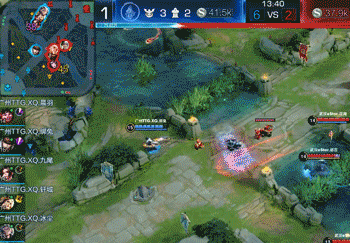 第一局比赛武汉eStar选出之前比较常用的野核裴擒虎+射手虞姬的组合。但面对广州TTG的强攻,武汉eStar只能被动防守,仅用时14分钟,广州TTG.XQ便将经济拉大至6K。在最后一波团战中,广州TTG.XQ先将集火目标锁定在武汉eStar唯一前排苏烈的身上。在将苏烈击杀后再陆续将马超与虞姬击杀,从而成功一波结束比赛。
