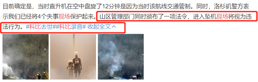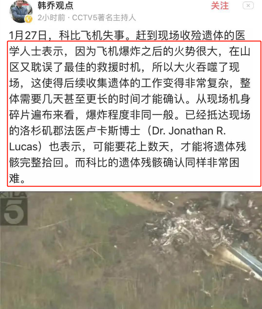 据悉,目前已经找到3具遗骸,相关负责的法医表示,可能要花上数天,才能将遗体残骸完整拾回。而科比的遗体残骸确认同样非常困难。
