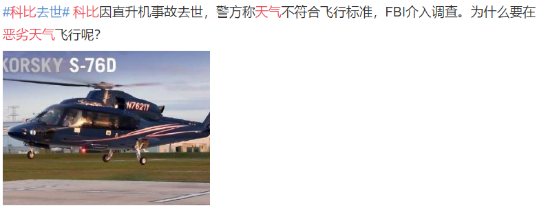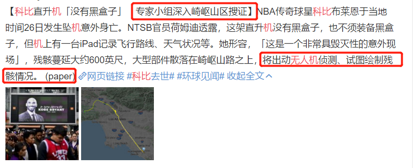 NBA传奇巨星科比乘坐直升机失事不幸离世,令人震惊与悲痛。1月28日,洛杉矶警方召开新闻发布会,公开了最新的事故详细画面,并表示目前调查组还未确定事故原因,而科比的遗体残骸再确认上也存在很大的难度。