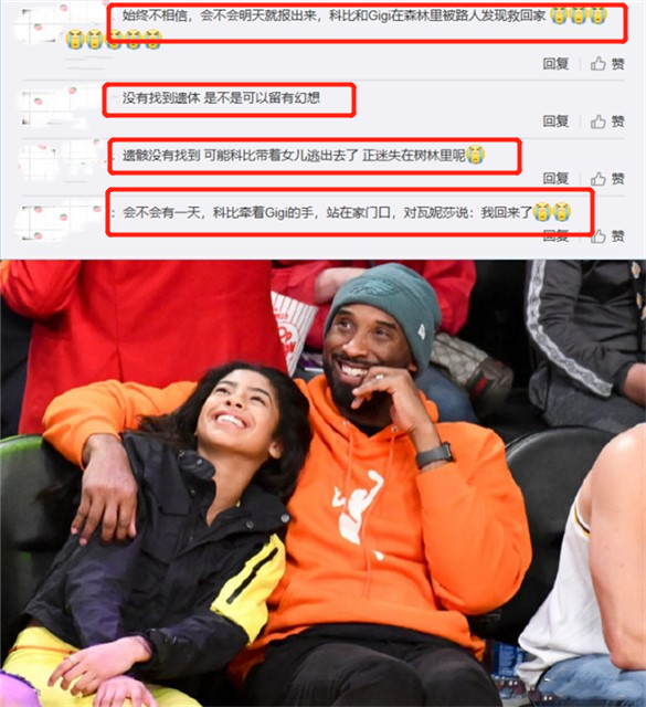 悲剧已经过去一天了,但是网友们仍旧不愿相信科比就这样离开了人世,加上他的遗体残骸还没找到,不少粉丝都还“心存幻想”,发文表示明天会不会突然爆出来科比和Gigi迷失在森林中被路人发现救回家的消息。