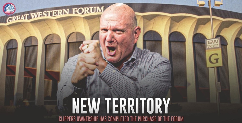 据了解,快船原计划在坐落于英格尔伍德区的大西部论坛球馆附近修建一座新场馆,但大西部论坛球馆及附近地区的开发权归属麦迪逊广场花园娱乐公司,后者的持有者是纽约尼克斯老板多兰。作为NBA的竞争球队,多兰极力反对快船的新建球馆计划,鲍尔默索性花巨资收购了大西部论坛球馆。