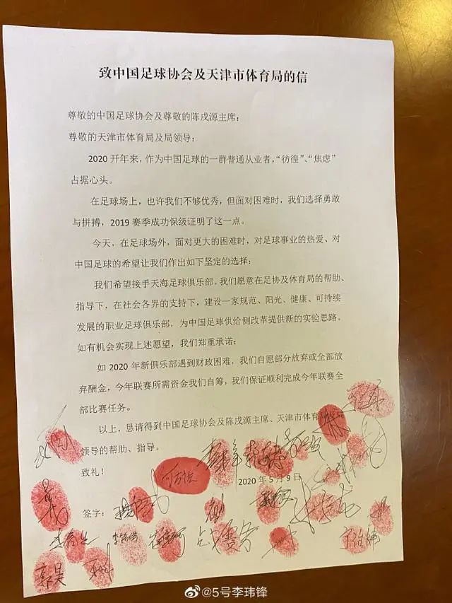 在8日传出消息「天海与万通谈判破裂,球队将进入破产清算」之后,天海教练组及球员今天向足协及体育局请愿——「愿意放弃部分甚至全部酬金,接手俱乐部,完成今年联赛。」