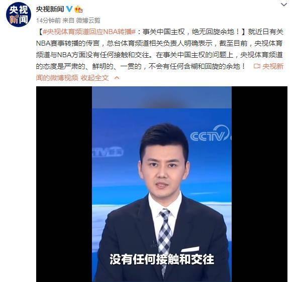 就近日有关NBA赛事转播的传言,总台体育频道相关负责人明确表示:截至目前,央视体育频道与NBA方面没有任何接触和交往。在事关中国主权的问题上,央视体育频道的态度是严肃的、鲜明的、一贯的,不会有任何含糊和回旋的余地!